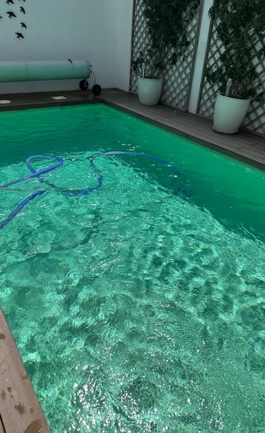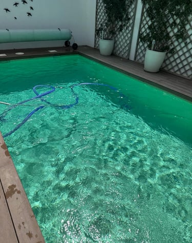 Equipa especializada em manutenção de piscinas, realizando limpeza, tratamento da água e verificação de equipamentos, garantindo segurança